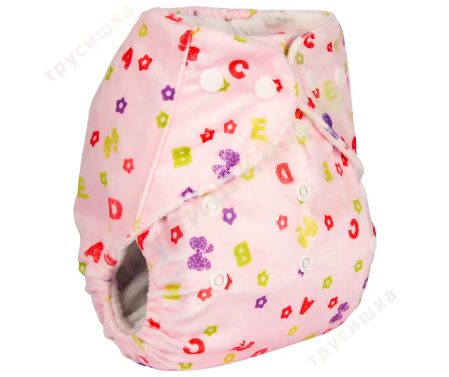 Внешний слой подгузников (ламинированный полиэстер, PUL) очень мягкий, тонкий, не теряет цвет после стирок и быстро сохнет.