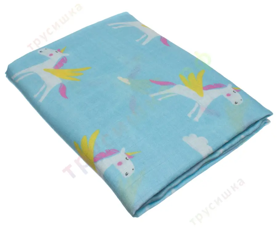 Муслиновая пеленка Единорог на голубом (бамбук-хлопок)