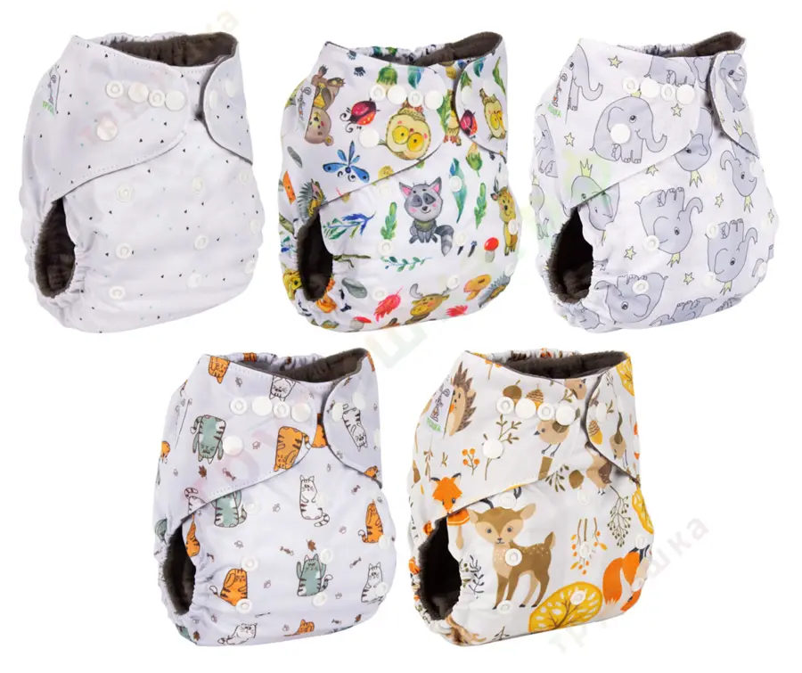 Набор подгузников Трусишка Бортики (бамбук-уголь) № 1, набор 5 шт