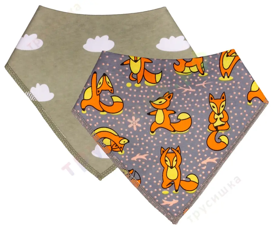 Набор слюнявчиков-бандан Лиса-йог и облака, 2 шт.