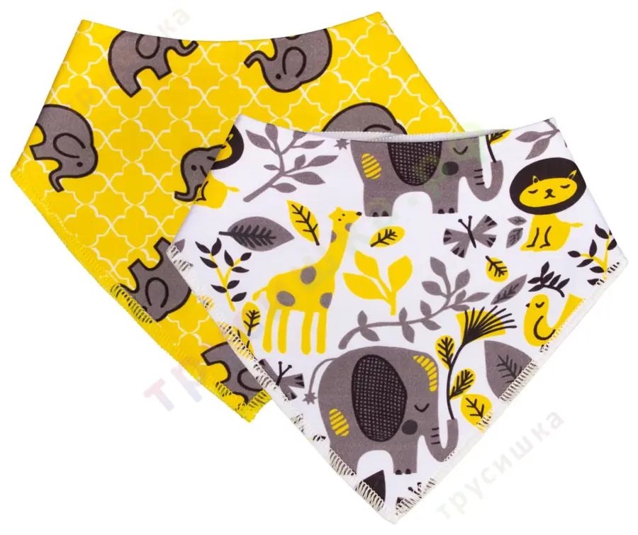 Набор слюнявчиков-бандан Слоны и Африка на желтом, 2 шт.