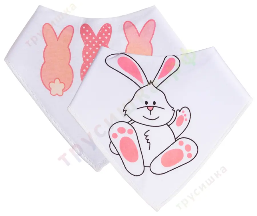Набор слюнявчиков-бандан Зайчики на белом, 2 шт.