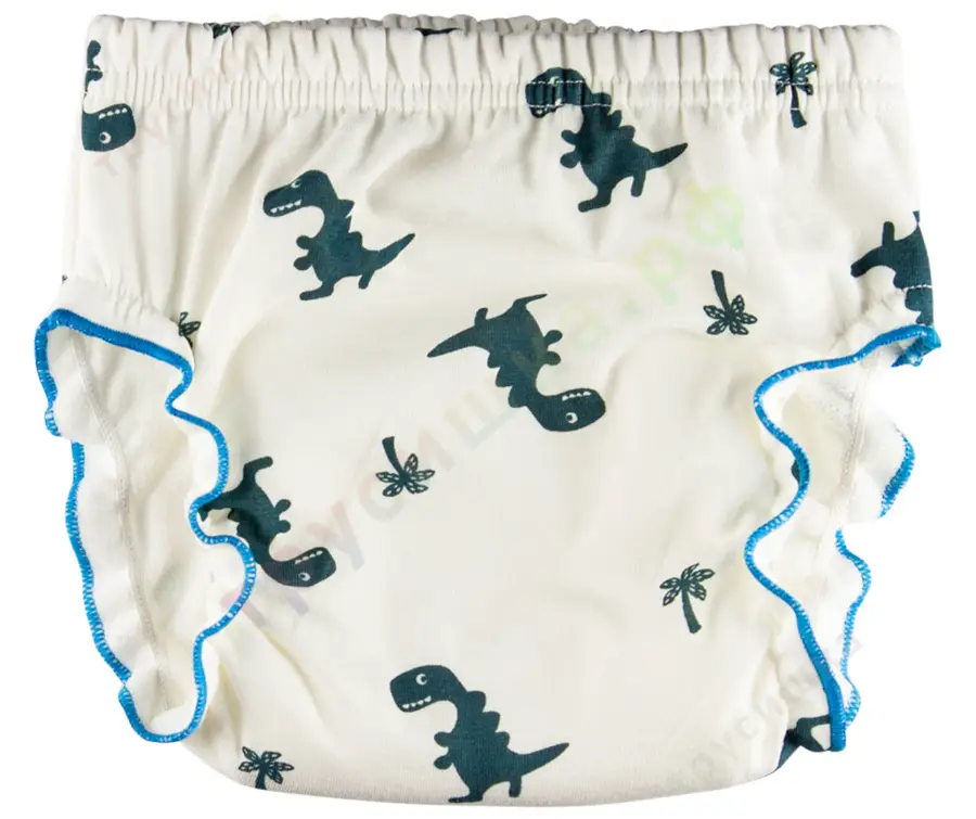- У данной модели трусиков вокруг ножек имеются эластичные резиночки с оборкой, благодаря чему трусики плотно облегают ножку малыша и не дают жидкости стекать по ногам.