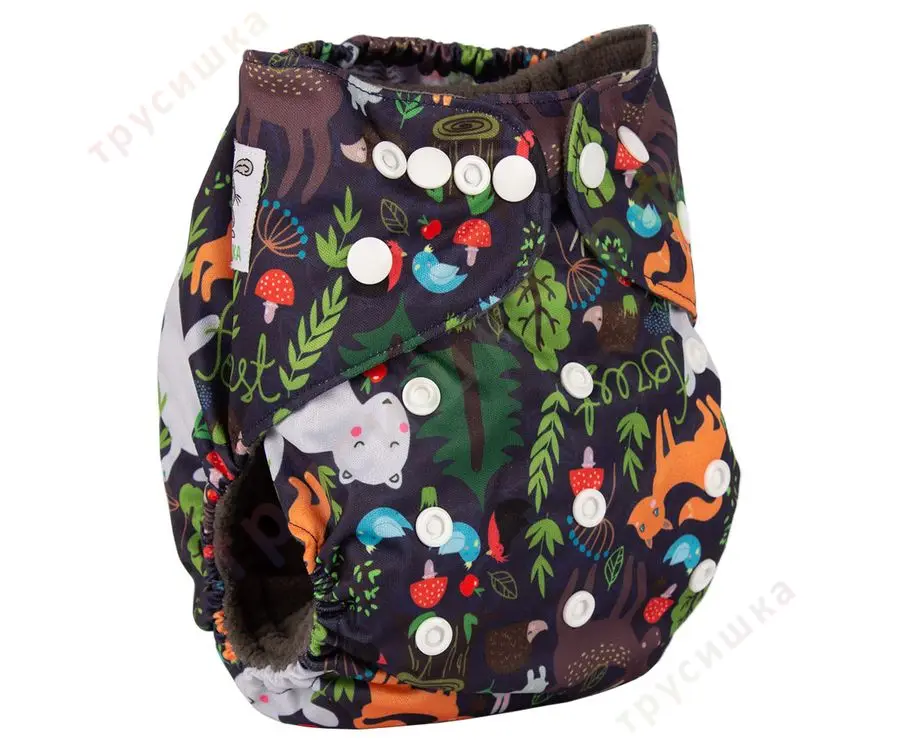Классический многоразовый подгузник на кнопках Трусишка с внутренним слоем из угольно-бамбукового фибра и защитными бортиками от протекания.