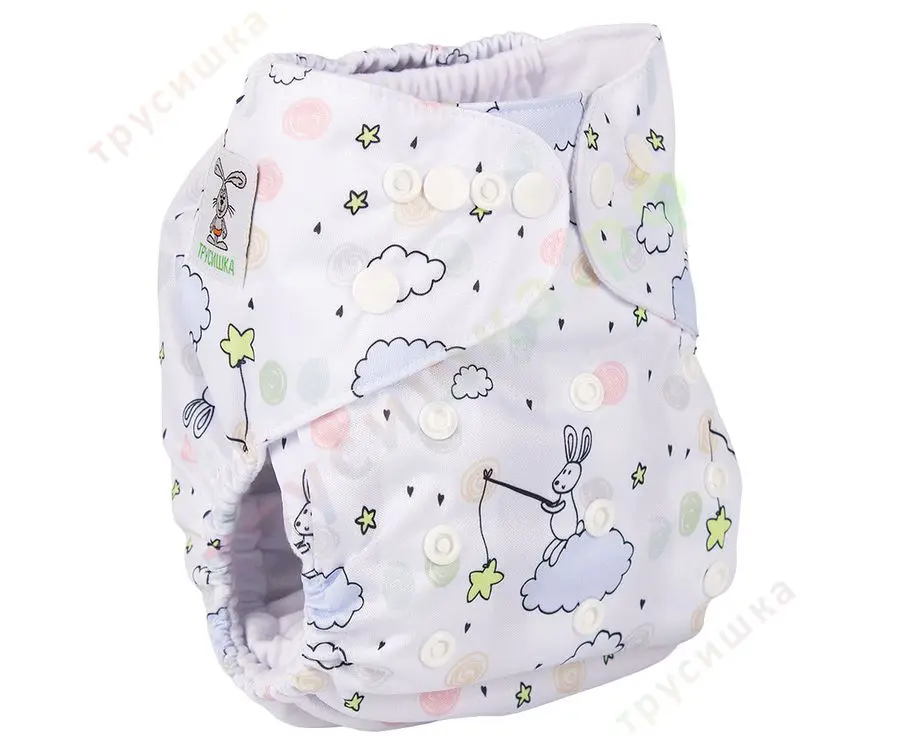 Классический многоразовый подгузник на кнопках Трусишка с внутренним слоем из микрозамши и защитными бортиками от протекания.