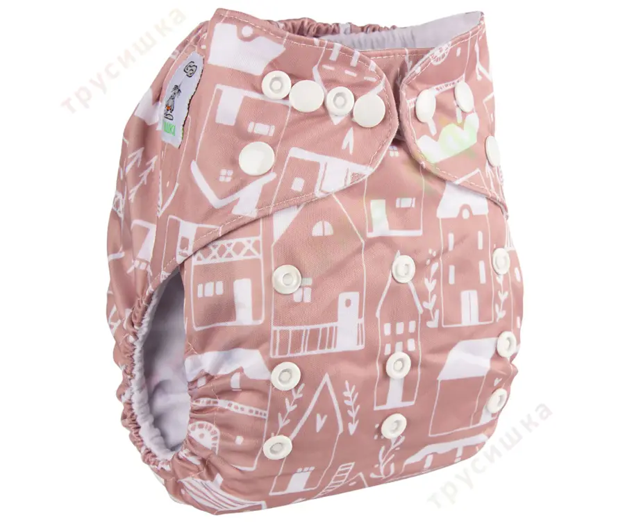 Классический многоразовый подгузник на кнопках Трусишка с внутренним слоем из микрозамши.