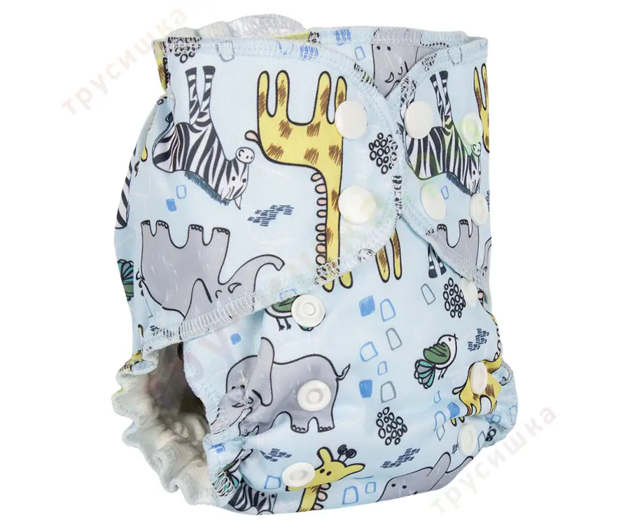 Многоразовый подгузник для новорожденных Трусишка Мини на кнопках, с внутренним слоем из бамбукового трикотажа и вшитым вкладышем.