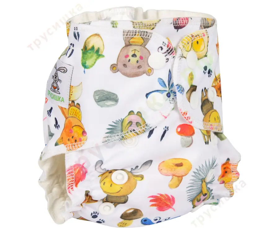 Многоразовый подгузник для новорожденных Трусишка Мини на кнопках, с внутренним слоем из бамбукового трикотажа и вшитым вкладышем.